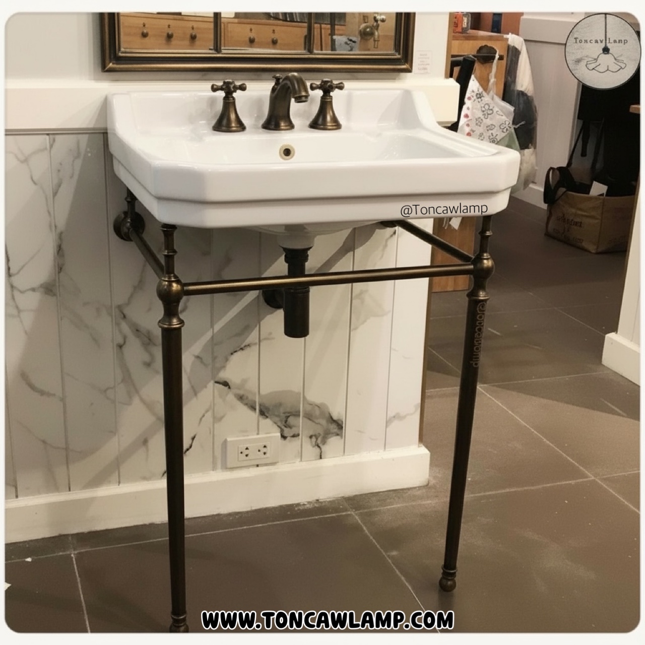 TSC 201BR อ่าง + ขายึดทองเหลือง + ชุดสะดือ+ ก๊อกน้ำผสม สีบรอนซ์
