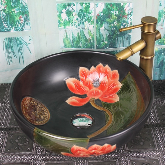 TSC 638 อ่างล้างมือ ลายดอกบัวสีแดง
