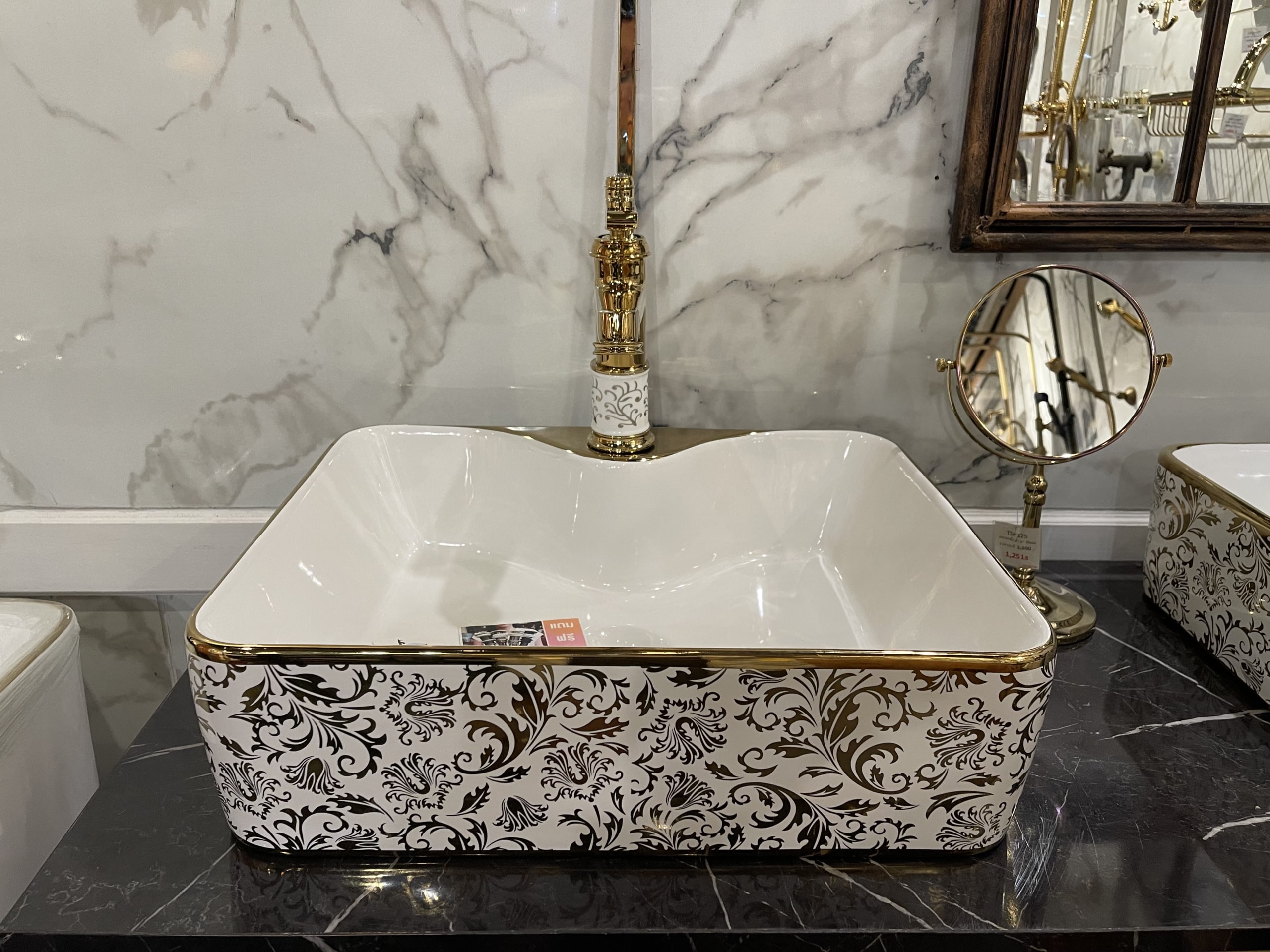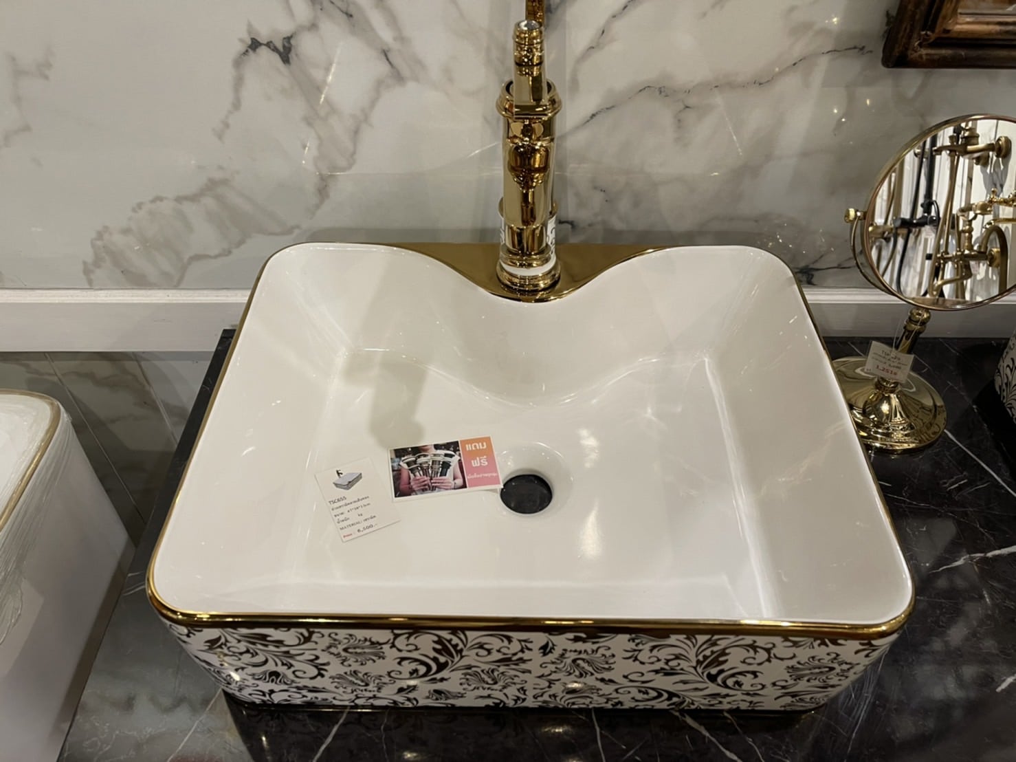 TSC 653 อ่างเซรามิคเขียนทองสี่เหลี่ยม (ก๊อกบน)