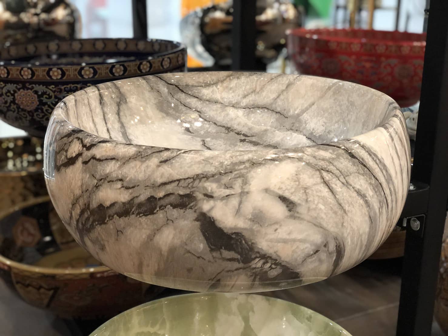 TSC 810 อ่างเซรามิคลายหินอ่อนกลม เส้นดำ