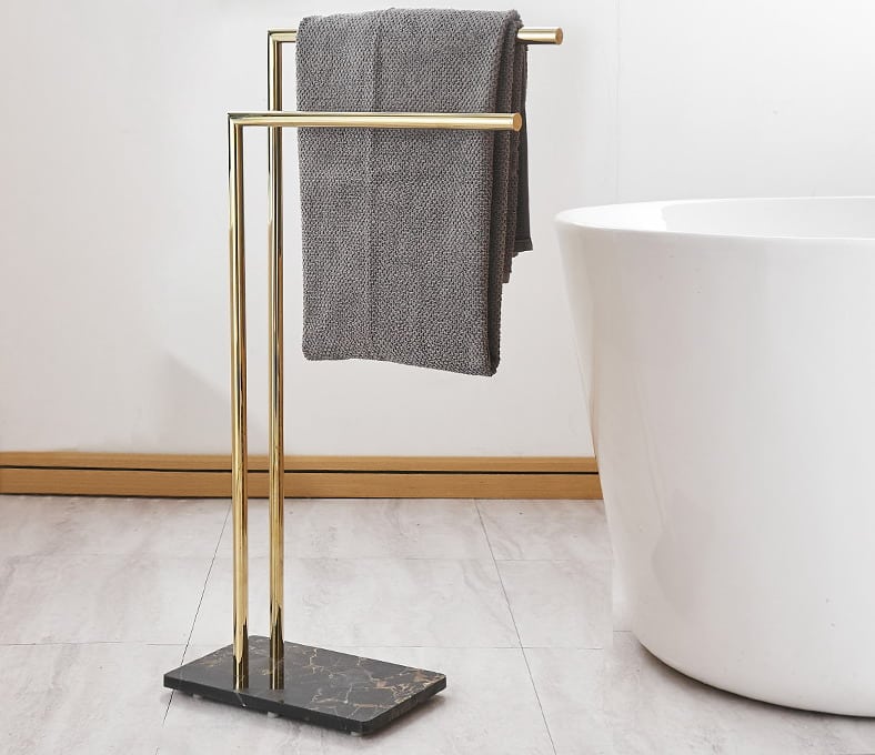 TSE101 ราวพาดผ้าตั้งพื้นทองเหลือง ฐานหินอ่อน