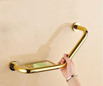 TSH 512G ราวจับผู้สูงอายุ มีที่วางสบู่ สีทอง